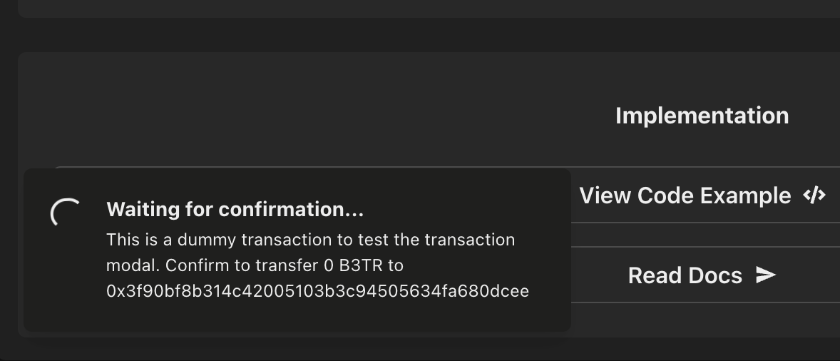 comment: `This is a dummy transaction to test the transaction modal. Confirm to transfer ${0} B3TR to ${humanAddress("Ox0")}`,
